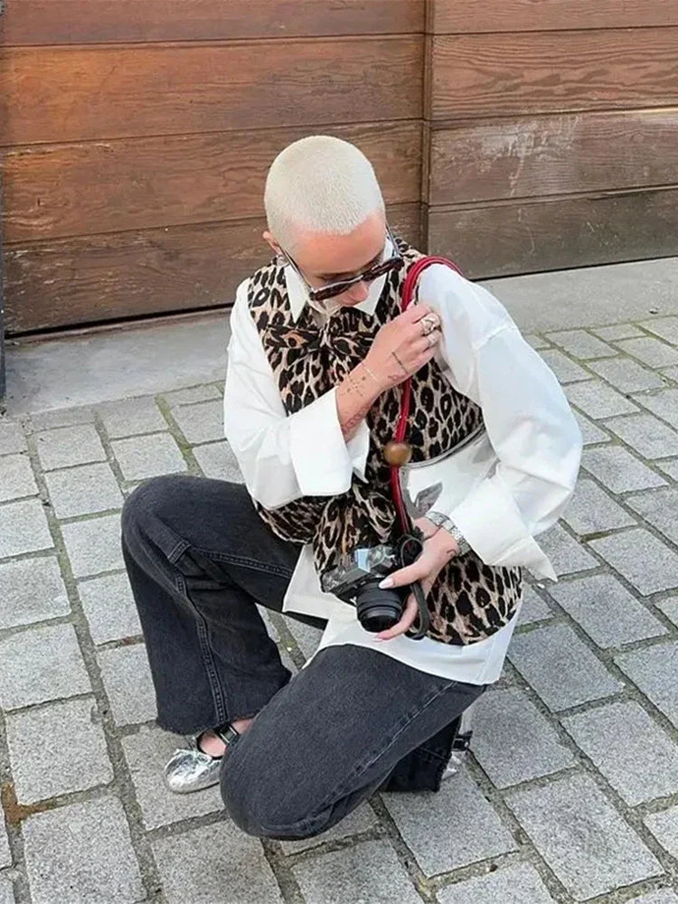 Leopard Print Bow Lace Up Vest